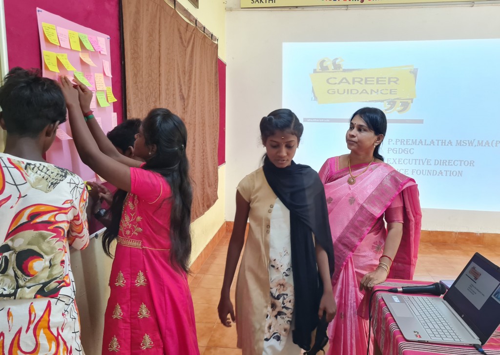 On 5th June 2024 a Workshop on Career Guidance was organized for children belonging to 9th standard to 12th standard. Ms.Premalatha, an expert from Kalvi Trust facilitated the sessions and enabled our children to identify their interests and choose a career path. She did encouraged them to set long term goals and short term goals to reach their potential. At the end of the workshop children asked questions and clarified their doubts.